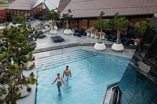 Za še več intime in sprostitve pa se podajte v vsemogočno leseno pravljico, kjer se bo vaše telo predalo toplotnim učinkom številnih tematskih savn. Občutite svobodo telesa na posebni nudistični terasi ali pa poskusite, kako je ležati na oblaku. Posebna soba z vodnimi posteljami vas bo odpeljala v najvišje kotičke vašega uma.